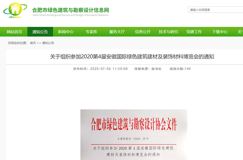 由安徽省房地产业协会、安徽省建筑节能与科技协会、安徽省建筑业协会支持,安徽省墙体材料革新和建筑材料节能协会、安徽省房地产商会、安徽省涂料行业协会、合肥市绿色建筑与勘察设计协会、合肥市房地产协会、安徽安采展览服务有限公司举办“2020第4届安徽国际建筑节能及新型建材展览会”将于9月23-25日在合肥滨湖国际会展中心举办。