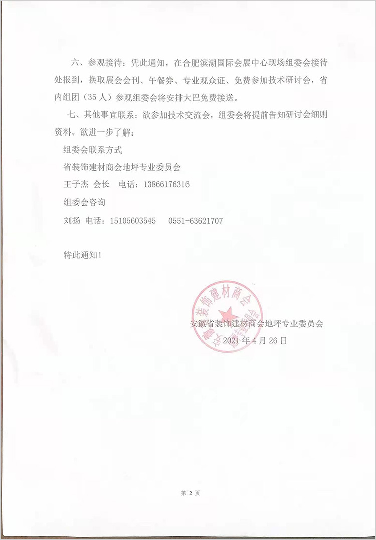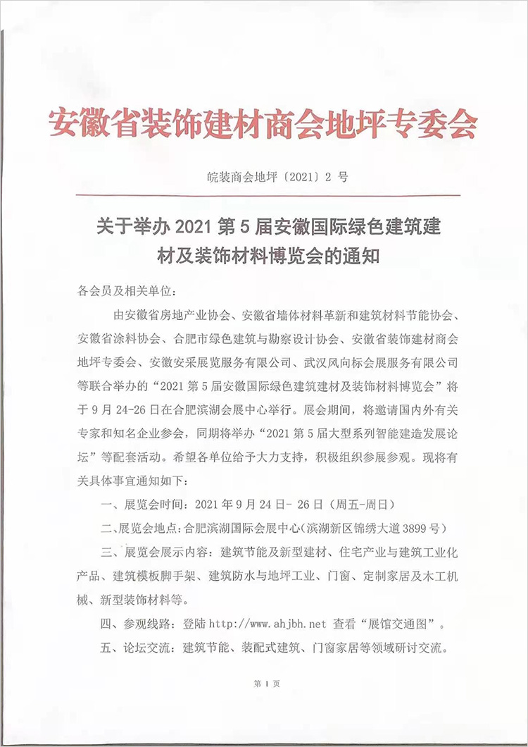 安徽省地坪专委会《关于举办2021安徽建博会通知》文件
