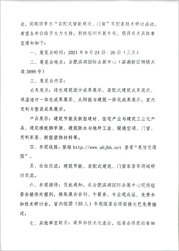 合肥绿色建筑协会《关于举办2021第5届安徽建博会通知》文件
