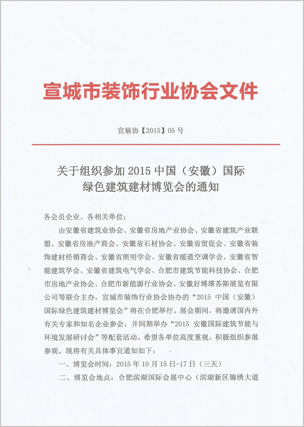 宣城市装饰行业协会将参团参观“2015安徽建博会”