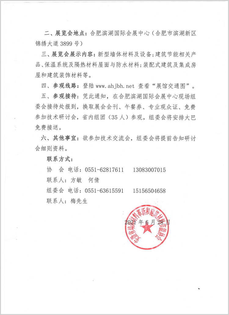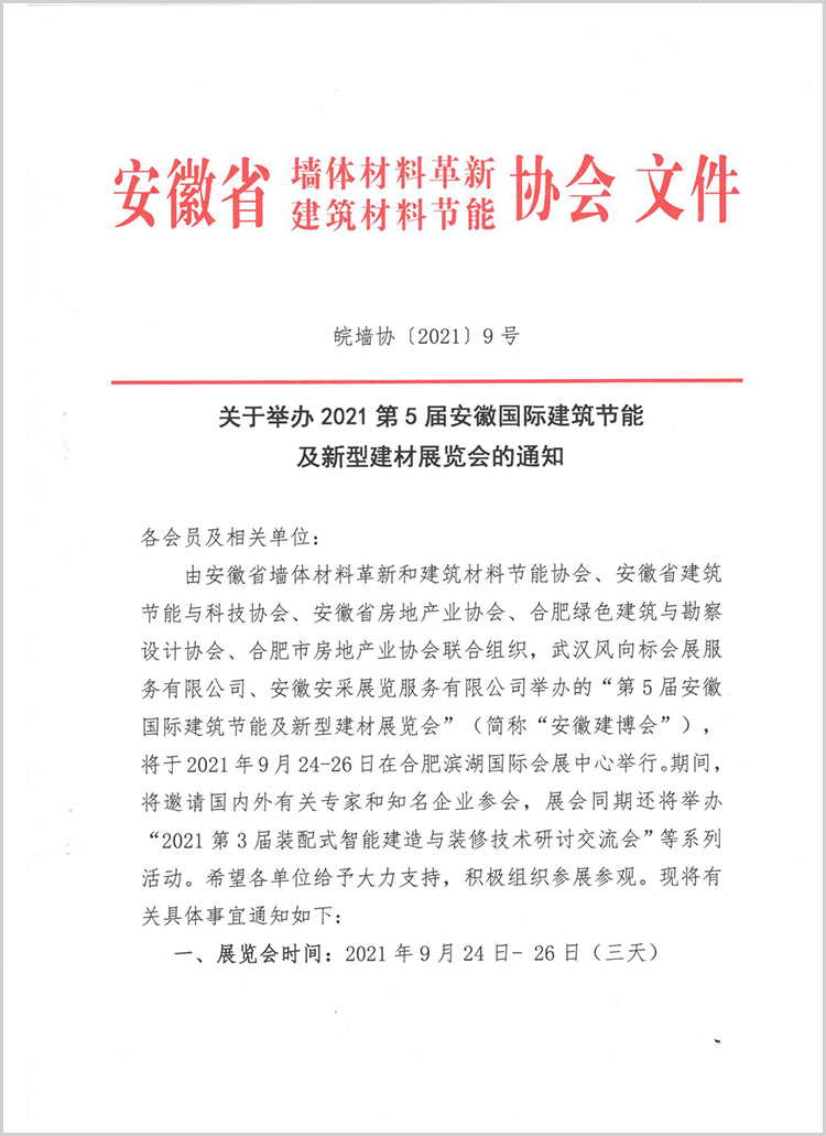 安徽省墙材协会《关于举办2021安徽建筑节能展通知》文件