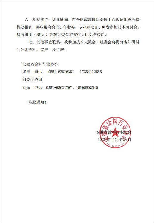 安徽省涂料协会协会《关于举办2021安徽建博会通知》的文件